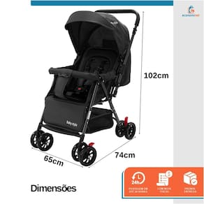 Dimensões Compactas – Medindo 74 cm x 65 cm x 102 cm, é ideal para uso em diferentes ambientes, desde shoppings até passeios ao ar livre.