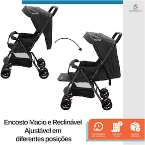 Fechamento Ultra Fácil – Sistema prático que permite dobrar e guardar o carrinho com apenas um movimento, ideal para o dia a dia.