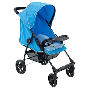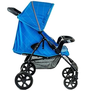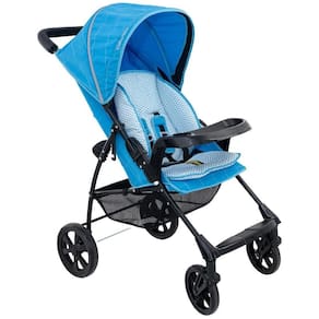 Características Técnicas: Cor predominante: azul Composição têxtil: 100% poliéster Estrutura em aço Tecido removível e lavável Encosto regulável em 4 posições Cinto de segurança 5 pontos Protetor de ombro Bandeja do bebê com porta copos, removível e fácil encaixe Capota removível e retrátil 2 Rodas dianteiras giratórias 2 Rodas traseiras com único sistema de freio Eixos traseiros removíveis Trava de Fechamento Desarme automático do encosto no fechamento do carrinho Acopla no DRC 8184 PRODUTO VENDIDO SEPARADAMENTE