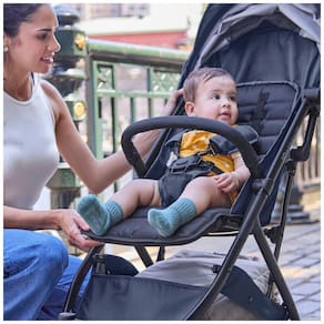 Indicada para crianças desde 6 meses até 22,7 kg, combina funcionalidades de um carrinho completo com portabilidade aprimorada.
