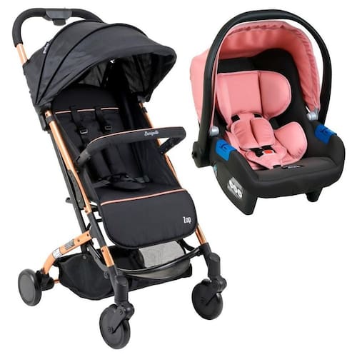 Carrinho de Bebê Zap Preto e Cobre e Bebê Conforto Touring X