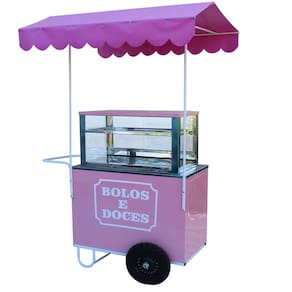 Com este prático carrinho você poderá iniciar um negócio vendendo deliciosos bolos e doces em locais de grande circulação de pessoas como festas, eventos, praças, shoppings, feiras, parque de diversões, etc. Descrição do Produto Modelo: 42531 Gabinete em chapa galvanizada e com adesivo. Mesa superior em aço inoxidável chassi super reforçado em tubo metalão de 25x25 mm Rodas pneumática 325 x 8 com rolamento. Rodizio giratório Este Carrinho é Térmico, e contém a placas de Gelox que deve ser congeladas e colocada no carrinho. Acompanha 8 Placas de Gelox Gabinete interno para utensílios MEDIDAS DO PRODUTO Altura até o toldo: 2,00m Altura: 140cm | Largura: 56cm | Comprimento: 1,00m Peso: 60 kg | Garantia: 3 meses Embalagens: 1 caixa medindo 1.00 mt x 0,70 cm x 1.00 mt