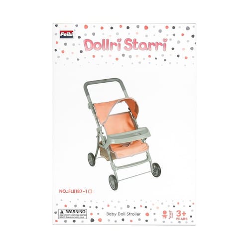 Características principais: • Modelo: FL8187-1 • Indicado para crianças a partir de 3 anos • Estrutura leve e dobrável • Assento e cobertura em tecido resistente • Rodinhas que giram facilmente para mais realismo na brincadeira • Tamanho ideal para bonecas pequenas e médias