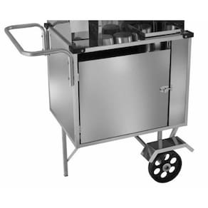 Material do chassi: Aço Carbono Material da chapa: Aço Inox Pintura: Epóxi Tipo de rodas: Maciças Acompanha 3 canecas pequenas, 1 caneca grande, adesivo e toldo.