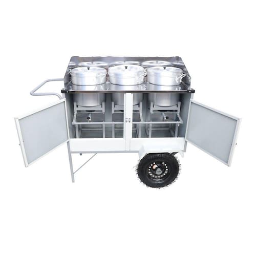 Ótima opção para quem quer empreender e tirar uma renda extra, o Carrinho de Caldo e Sopas com Rodas Pneumáticas e Guarda Sol, é um produto de excelente qualidade, de fácil manuseio e limpeza e muito prático.
