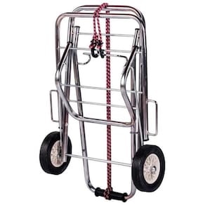 Material: ferro zincado. Medidas aberto: 103 a x 36 l x 37,5 p cm. dobrado: 62 a x 36 l x 20 p cm. Peso: 4,3kg. Marca: Carguinha Carrinhos Ean: 300384122726