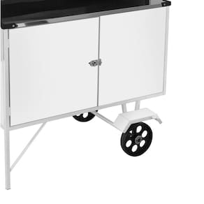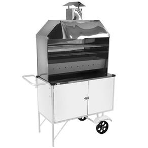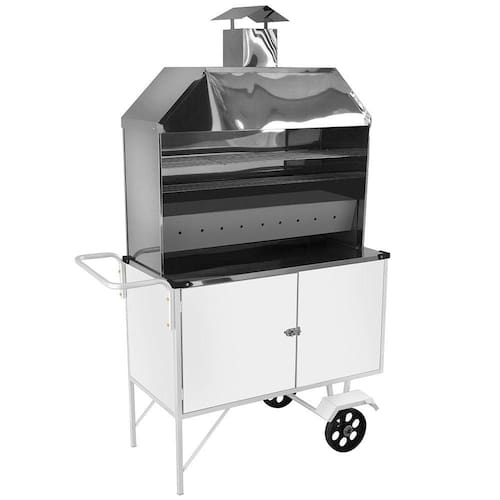 Esse carrinho de churrasquinho possui chassi fabricado em aço carbono e chapas em aço pintado, proporcionando maior durabilidade e resistência ao equipamento. Conta com um empurrador e rodas maciças para fácil deslocamento do carrinho ambulante de churrasco durante a sua utilização. Além disso, possui 2 grelhas para acondicionar e assar os espetinhos e uma coifa para absorver a fumaça dos alimentos que serão preparados.