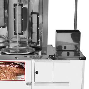 Sua estrutura é fabricada em aço carbono com chapa de aço pintada de branco, sendo o carrinho de excelente qualidade e limpeza super prática contando também com um exclusivo adesivo e toldo para dias ensolados e chuvosos. Esse Carrinho de Ambulante é equipado com 1 espeto manual e 3 infra vermelhos deixando seu assado mais uniforme, contém também reservatório térmico aonde é possível manter sucos e bebidas para acrescentar na sua venda sendo esse como um dos melhores do mercado!
