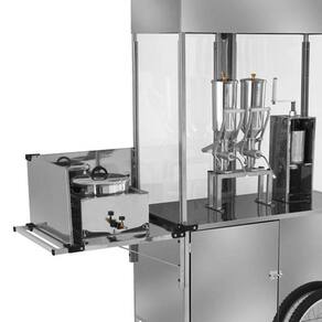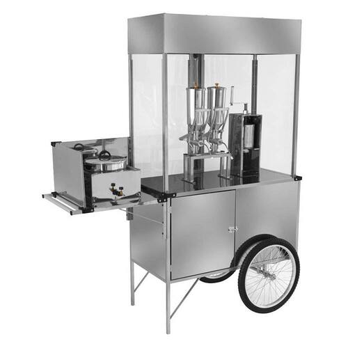 Esse Carrinho Ambulante de Churros é fabricado em aço carbono e chapa de aço inox 430, acompanha masseira fuso e caçarola com tampa para que a massa possa ser feita e frita na hora! Além disso conta com 2 doceiras para o recheio, escorredor, fogão embutido e adesivo exclusivo.
