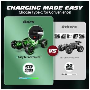 O que está incluído: 1 carro RC 1 x Transmissor 1 x cabo USB 1 x Manual do Usuário 2 x baterias recarregáveis 2 pilhas AA