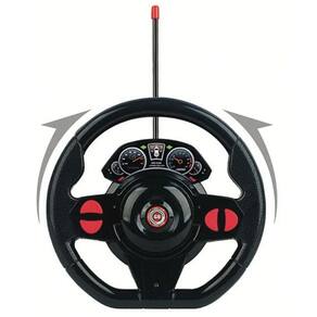 O controle remoto vem no formato de volante com pedal, proporcionando uma experiência ainda mais realista de direção.