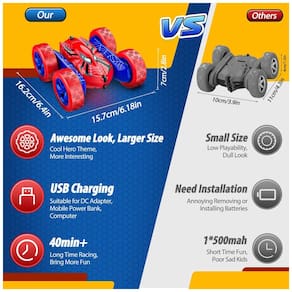 O nosso carrinho de controle remoto é incrível! Com tração nas 4 rodas, movimentos para frente e para trás, curvas para esquerda e direita e rotação 360°, permite drifts completos. Sua função de dupla face facilita a superação de obstáculos, trazendo velocidade e emoção para a experiência de pilotagem do seu filho. Equipado com bateria de 900mAh e cabo de carregamento USB, nosso carrinho funciona por até 50 minutos com uma única carga. Com duplo motor e velocidade máxima de 15KMH, oferece excelente capacidade de escalada. Sem interferências, graças ao controle remoto anti-interferência de 2.4Ghz, permitindo corridas multiplayer sem interrupções. Resistente, com pneus de borracha anti-colisão e função de absorção de choque, é ideal para uso em diversos terrenos. O presente perfeito para entusiastas de corrida, tornando-se o presente de aniversário ou feriado ideal para seu filho.