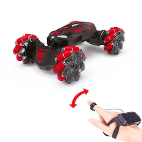 As funções de controle inteligentes incluem controle por gestos, através de um relógio de pulso, além do clássico controle remoto 2.4G, proporcionando diferentes formas de comandar o carrinho. As manobras são amplas, com funções como avançar, recuar, virar à esquerda e à direita, além de uma impressionante torção com um toque, que eleva a brincadeira a outro nível.