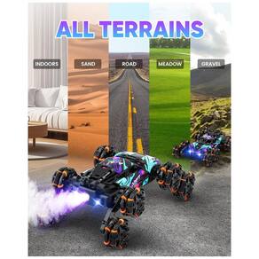 O Carro de Acrobacias com 8 rodas da Minetom é incrível! Além das funções tradicionais, ele realiza acrobacias como rotação 360º, círculos, derrapagens, escaladas e direção de ambos os lados. Cada par de rodas pode ser operado individualmente e girado em ângulos diferentes para desviar de obstáculos. Ideal para meninos e meninas de 6 a 12 anos! Possui dois modos de controle inovadores: o Relógio Sensor de Gravidade e o Controle Remoto. Com gestos simples, é possível mudar a direção do carro ou assisti-lo se transformar. Com duas baterias recarregáveis, você terá horas de diversão longe das telas, com luzes, música e truques divertidos. Surpreenda seus filhos com um presente incrível, proporcionando momentos inesquecíveis de diversão!