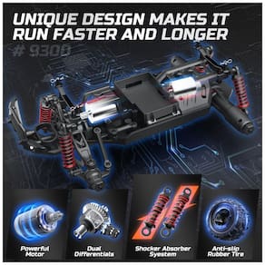 2021 Carro RC de alta velocidade atualizado 118 O carro de controle remoto de alta velocidade 9300 recém atualizado tem pneus maiores e linhas de pneu recém projetadas, o que lhe dá uma aderência mais forte. A folha de metal do cubo bem projetada aumenta a resistência do cubo para evitar a deformação causada pela colisão. Também o equipamos cuidadosamente com uma escova e um bolso com cordão, que o ajudarão a manter o carro RC arrumado e a guardar os acessórios. Tudo o que você precisa para se divertir está na caixa, não hesite em aderir ao DEERC 2 Baterias e Chassi PA os carros RC vêm com duas baterias de 7,4 V , 850 mAh, você pode aproveitar a diversão de dirigir por cerca de 40 minutos a mais mais de 20 minutos para cada bateria. E o chassi é feito de náilon, que tem muitas propriedades. É a melhor escolha para entusiastas de caminhões RC Observe que você pode receber 2 tipos de embalagem. 1. Uma bateria está no carro e a outra está na embalagem. 2. Duas baterias estão na embalagem. A as enviará aleatoriamente, obrigado por sua paciência e leitura Carro RC Hobby Grade Fato para iniciantes e avançados Equipado com um sistema de controle remoto de 2,4 GHz e pode ser controlado proporcionalmente para aceleração e velocidade. Ajuste o interruptor de velocidade no sentido horário para aumentar a velocidade de direção, no sentido anti horário para diminuir. Ajuste a direção de direção das rodas através do acabamento da direção. Observe que a luz indicadora do controle remoto permanecerá sólida quando o controle remoto e o carro RC forem pareados com sucesso. Ele abre um mundo de aventura e diversão para s pilotos Moter com dissipador de calor profissional de metal O monster truck está equipado com um motor 380 que pode executar 21500 rotações por minuto, o que fez um grande aprimoramento para a aceleração e permite que o carro RC alcance uma velocidade máxima de 40 km , h. Há um dissipador de calor de metal que cobre totalmente o motor para aumentar a dissipação de calor do motor e estender sua vida útil. Observe que o motor fica aquecido quando o caminhão é conduzido por um longo período. Recomendamos que você faça uma pausa intermitente após 15 minutos de carro. Corrida todo o terreno o design da suspensão independente é introduzido tanto na suspensão dianteira como na traseira neste carro RC de alta velocidade. Os amortecedores de metal facilitam se para aumentar ou diminuir a tensão da mola para as demandas de tração desejada e viagens de suspensão. As quatro rodas são todas embaladas com molas de metal que dão suporte a quedas inesperadas e à natureza ondulante do solo. O ambiente hostil não pode impedir sua jornada de corrida, dirija o DEERC para onde quiser
