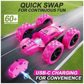 O Carrinho de Acrobacias RC da QUNREDA foi atualizado com módulos de bateria recarregáveis, proporcionando 50 minutos de diversão com duas baterias. Fácil de controlar, oferece 9 acrobacias diferentes e alcance de 50 metros. Com faróis vermelhos e pneus duráveis, pode ser utilizado tanto dentro de casa quanto ao ar livre. Este pacote inclui 1 Carro RC, 1 controle remoto, 2 baterias recarregáveis, 2 pilhas AA, 1 cabo de carregamento, 1 chave de fenda e 1 manual de instruções. O presente perfeito para o Natal, Halloween ou aniversário de meninos e meninas!