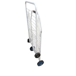 Carrinho de feira branco 4 rodas de borracha dobrável Carrinho de feira branco com divisória dobrável reforçado com 4 rodas de borracha. Lindo carrinho de feira reforçado com divisória Pintura Epoxi cor Branca, muito bonito e com área de carga maior que os comuns. Carrega até 80kg. Com Divisória e dobrável. Muito bom para pessoas idosas. Atenção: A cor das rodas pode variar, dependendo da disponibilidade da distribuidora. Medidas: - Altura: 94cm - Largura: 44cm. - Profundidade: 38cm. Área de carga: - Altura: 56cm. - Largura: 33cm. - Profundidade: 30,5cm. Peso: 3,60kg. Produto com . Marca: Não Informado
