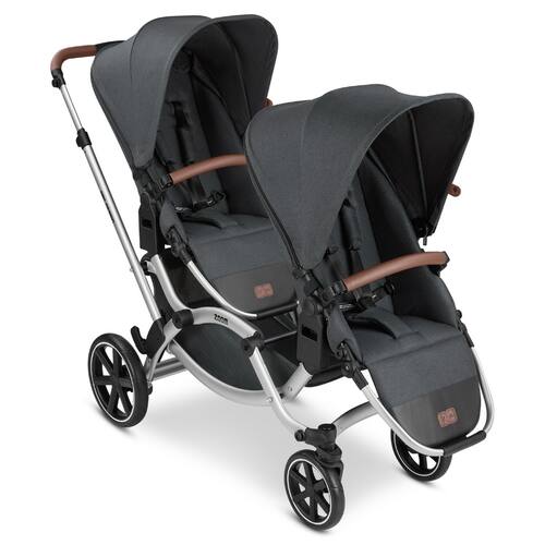 O Carrinho Zoom da ABC Design, ganhador de prêmios renomados na Europa, o Zoom pode ser utilizado por bebês gêmeos ou por irmãos com pouca diferença de idade. Um carrinho com diversas vantagens numa única estrutura, pode ser combinado com o assento principal, bebê conforto e Moisés, fazendo parte de cada etapa de crescimento do seu bebê. Cada peça pode ser acoplada na estrutura, de forma independente, facilitando o dia a dia dos passeios com os papais. O Produto acompanha o assento principal que é recomendado de 06 meses a 3 anos ou até 15kg cada (total suportado pelo carrinho 30kg) conforme normas brasileiras. Quando adquirido com o Moisés ou bebê conforto, o carrinho poderá ser utilizado a partir de recém-nascido. Por se tratar de um carrinho modular, os assentos podem ser removidos facilmente e colocados em diversas posições. Essas variações permitem que os bebês fiquem de frente para outro para que possam interagir, de costas, de frente para o movimento ou até mesmo os dois assentos virados para os pais! Se caso os bebês dormirem, os pais ainda têm a opção de reclinar os assentos dando mais conforto e tranquilidade na hora do passeio. O carrinho conta com cinto de segurança de 5 pontos (que pode ser ajustado de acordo com o crescimento dos bebês) e barra de proteção adicional. O carrinho possui regulagem de altura do puxador para facilitar o passeio de acordo com a estatura dos pais. A capota do carrinho é resistente à água, possui fator proteção solar 50+, que protege a pele sensível do bebê dos raios nocivos do sol e pode ser estendida para melhor cobertura de sombra. O tecido interno do carrinho é em Poliéster, removível e lavável conforme orientações no manual de instruções. Possui 4 rodas desmontáveis com sistema de amortecimento interno, sendo dianteiras giratórias 360°, que podem ser travadas em uma única direção, rodas traseiras com sistema de rolamento e freio. O material das rodas é em polietileno e seu tamanho absorve o impacto e ajuda nas caminhadas em terrenos desnivelados. Simples e prático, com estrutura 100% alumínio, o Zoom quando dobrado fica compacto medindo apenas 85cm X 60cm X 57cm, facilitando o transporte mesmo em veículos com pouco espaço no porta-malas. Possui cesto de objetos com maior capacidade de toda linha! OBS: O Moisés inclui adaptador necessário para encaixe na estrutura, porém, para que possa ser montado as duas peças na estrutura, se faz necessário um terceiro adaptador vendido separadamente, elevando um dos Moises, garantido assim que as duas peças fixem na estrutura. O Zoom é duplamente certificado pelas normas Brasileiras (Inmetro) e Europeias. Moisés, Bebe Conforto e Adaptadores vendidos separadamente.Produto Alemão; Carrinho de Gêmeos ou crianças com pouca diferença de idade; Carrinhos paras Bebês de 06 meses a 3 anos de idade Suporta até 15kg cada assento (total 30kg) conforme normas Brasileiras; Fator de proteção solar UV50+; Resistente a água; Tecido Poliéster; Estrutura 100% Alumínio; Rodas Dianteiras e Traseiras removíveis; Rodas com rolamento; Amortecedores nas rodas traseiras; Cesto de Objetos Grande; Capota Estendida com visor; Assentos com 3 tipos de Inclinação; Assentos reversíveis, várias opções de posições; Cinto de segurança 5 pontos com protetores; Barra de proteção adicional; Acopla Bebê Conforto e Moisés; Fácil fechamento; 02 anos de Garantia; Moisés, Bebe Conforto e Adaptadores vendidos separadamente.