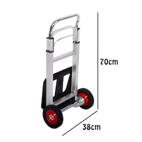 Carrinho De Mão para Carga Ferro Dobrável Suporta Até 150kg Este carrinho de carga robusto e durável é ideal para transportar cargas pesadas com facilidade e segurança. Com uma capacidade de carga de até 150kg, ele é perfeito para uso em armazéns, escritórios, lojas e até mesmo em casa. Construído em ferro resistente, este carrinho é projetado para durar e suportar até mesmo as cargas mais pesadas. Ele possui uma alça ergonômica para facilitar o transporte e rodas resistentes para movimentação suave e fácil em superfícies planas ou irregulares. Este carrinho é fácil de montar e desmontar, o que o torna perfeito para armazenamento compacto quando não está em uso. E com sua capacidade de carga impressionante, este carrinho de carga de ferro é uma escolha inteligente para quem precisa transportar itens pesados de forma eficiente e segura. Não perca tempo e adquira agora mesmo este carrinho de carga de ferro incrível Características:- Fabricado em Ferro de alta resistência;- A extensão vai até 1,07 metros de altura;- Rodas em TPE bem rígidas;- Dobrável e Portátil;- Peso aproximado de 3,2Kg;- Suporta até 150kg;
