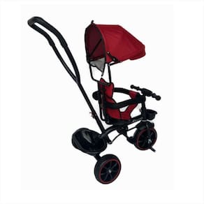 Especificações técnicas: - possui pedal p/pedalar - possui apoio de pés - possui duas cestas: - cesta dianteira aprox. c: 13cm x l: 12cm x a: 6cm - cestatraseira aprox. c: 21cm x l: 35,5cm x a: 12cm - possui guarda-sol com proteção mosquiteiro - possui trava de segurança - possui capa de assento almofadada - possui pneus emborrachado