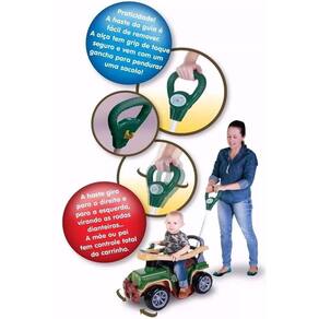 acompanhar o crescimento da criança é fundamental, ainda mais pilotando um carrinho jip jip da maral. A mãe pode optar por duas opções, quando for pequeno poderá empurrar através da haste e quando a criança for maior, poderá brincar sozinho ou com amigos. Basta retirar a haste o anel de proteção e o apoio de pés. Para animar ainda mais o seu passeio, o carrinho possui diversas opções de câmbio, chaves e buzina que emite som. Características do produto: