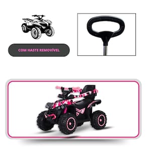 Especificações Técnicas: - Marca: Uni Toys - Modelo: Quadriciclo Meninas Poderosas - Código do Fabricante: 2656 - Faixa Etária Indicada: A partir de 12 meses - Capacidade Máxima: 30 kg - Acionamento: Faróis que acendem de verdade - Haste direcionável e removível - Aro de proteção removível - Material: Polipropileno