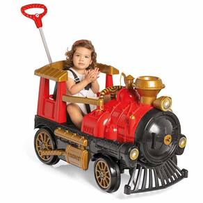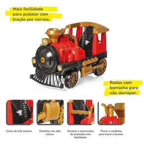 Carrinho de Passeio e Pedal - Locomotiva - Calesita: a Locomotiva da Calesita está partindo e o destino é a diversão das crianças. Essa linda Locomotiva - 2 em 1 - Passeio e Pedal é o carrinho ideal para as brincadeiras das crianças e passeios em família. Locomotiva - 2 em 1 - passeio e pedal: • Função pedal: Ao tirar os acessórios a Locomotiva vira uma lindo veículo a pedal • Função passeio: Mantendo os acessórios, os papais podem conduzir o passeio ao empurrar o carrinho Detalhes: • Direção e rodas guiadas pelo empurrador • Rodas com borracha para não derrapar • Mais facilidade para pedalar com tração por correia • Encaixe e desencaixe o empurrador com praticidade • Suporte para bolsa • Apoio de pé e aro protetor fáceis de remover • Câmbio para acionar a versão pedal • Com cinto três pontas • Ao acionar o “apito” toca o som • Chaminé/caldeira/limpa trilho/embolo/manômetro da pressão/apito Informações: • Produto: Carrinho Locomotiva 2 em 1 • Marca: Calesita Brinquedos • Coleção: Locomotiva • Tipo: Carrinho 2 em 1 - Passeio e Pedal • Categoria: Carrinho de Passeio e Pedal • Tamanho (C x A x L): - 66,5 x 100 x 58,7cm (sem haste) - 58,7 x 100 x 98,5cm (com haste) • Volume (Peso): 9,2 kg • Peso suportado: até 30 kg • Conteúdo: - 01 Locomotiva - 01 Empurrador com suporte para bolsa - 01 Par de proteção lateral - 01 Par de apoio de pés - 01 Manual de instruções • Idade recomendada: - A partir de 12 meses de idade: Passeio - A partir de 24 meses de idade: Pedal Especificações: • Referência: 1043 • Código de barras: 7898179824076 • Embalagem (C x A x L): 101 x 69 x 49 cm • Embalagem (Peso): 11.4kg • Material Composição: Plástico • Registro: CE-BRI/INNAC-02026-01A • Certificado: Órgãos Autorizados - OCP´S (Organismos de Certificação de Produtos) Habilidades desenvolvidas: • Curiosidade e descoberta • Compreensão de causa e efeito • Coordenação entre olhos e pés • Coordenação motora fina - mãos e dedos • Coordenação motora grossa - braços e pernas Aviso: • As imagens são meramente ilustrativas • Os pesos, tamanhos e medidas são aproximados • As cores e estampas dos produtos podem ter variações • As informações são de responsabilidade do fabricante ou fornecedor