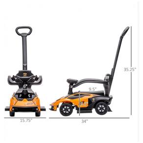 Informações sobre o carro para passeio: Dimensões gerais: 86,36 centímetros de comprimento x 40 centímetros de largura x 89,54 centímetros de altura. zenamento: 22,86 centímetros de comprimento x 12,70 centímetros de largura. Capacidade de peso: 24,95 quilogramas. Idade recomendada: 18 36 meses. Montagem necessária Marca: Não Informado