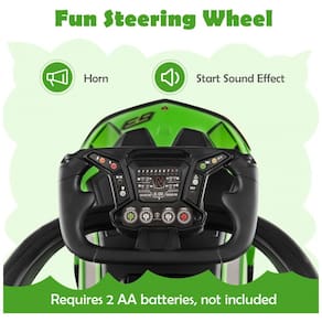 Experiência de direção interessante: O volante divertido ajuda a controlar sua direção, enquanto 4 rodas flexíveis oferecem movimento suave. Além disso, o volante requer 2 pilhas AA, não incluídas também possui buzina interessante e efeito sonoro de partida para maior alegria ao dirigir.