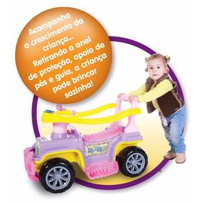 Acompanha o crescimento da criança, retirando o anel de proteção, apoio de pés e guia, a criança pode brincar sozinha.