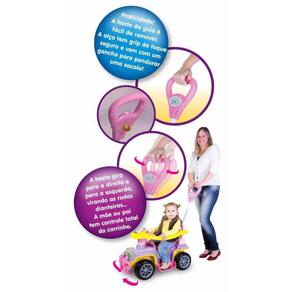 A haste gira para esquerda e direita, virando as rodas dianteiras, a mãe/pai tem controle total do carrinho.