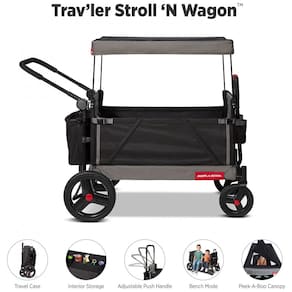 PUSH PULL O Trav ler Stroll N Wagon permite que você puxe como um vagão ou empurre para maior comodidade em um veículo. Possui uma alça de puxar de vagão NeverFall na frente e um guidão dobrável na parte de trás. RECURSOS PARA TODA A FAMÍLIA Incluídos no Trav ler Stroll N Wagon estão porta copos, uma bolsa de zenamento traseira removível e uma janela de malha peek a boo no dossel de proteção UV, tornando este o veículo ideal para toda a sua família. DOBRAS PARA ZENAMENTO A dobra fácil com uma mão permite um zenamento conveniente. Este vagão é portátil e pode ser guardado ou levado para qualquer lugar PARA CRIANÇAS Radio Flyer Stroll N Wagons passa no padrão de segurança de brinquedos ASTM f963 13. Este vagão inclui um freio de pé traseiro, cintos de segurança de 5 pontos e um dossel de proteção UV para proteger seus pequenos do sol. RODAS DE QUALIDADE Este vagão possui rodízios dianteiros para uma direção ágil e grandes rodas traseiras de áceis de empurrar. Feitas de espuma de alta densidade, essas rodas proporcionam uma condução suave e silenciosa Marca: Não Informado