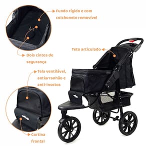 O carrinho de passeio é uma solução segura e confortável para o dia a dia do seu pet.