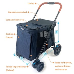 O carrinho de passeio é uma solução segura e confortável para o dia a dia do seu pet.