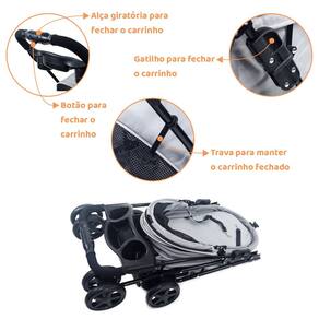 Descrição do produto: O carrinho de passeio da marca Mighor é de fácil manuseio, dobrável e compacto, basta pressionar o botão na alça para dobrá-lo, sendo uma ótima opção para viagens, pois ocupa pouco espaço no porta-malas do seu carro.