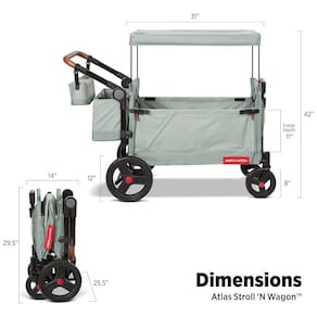 O Atlas Stroll N Wagon é um vagão versátil que oferece 3 modos diferentes de assento para dois passageiros: transporte e assento corrido. Ele possui uma alça de puxar NeverFall na frente e um guidão dobrável e ajustável com uma alça de couro vegano premium na parte traseira. As rodas de borracha com rolamentos proporcionam um passeio suave. O porta-pais XL incluso possui 2 porta-copos isolados, uma bolsa de armazenamento com zíper para manter pequenos itens seguros e um compartimento central com tampa magnética. A bolsa de armazenamento traseira funciona como uma bolsa conveniente com alças quando removida do vagão.