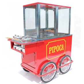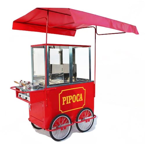 Com este prático carrinho você poderá iniciar um negócio vendendo deliciosas pipocas em locais de grande circulação de pessoas como festas, eventos, praças, shoppings, feiras, parque de diversões, etc.