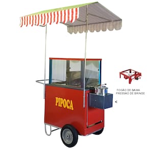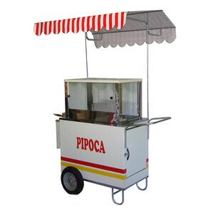 Com este prático carrinho você poderá iniciar um negócio vendendo deliciosas pipocas em locais de grande circulação de pessoas como festas, eventos, praças, shoppings, feiras, parque de diversões, etc. Descrição do Produto Gabinete em chapa galvanizada com pintura a pó Mesa superior em aço inoxidável. Chassi super reforçado fabricado em tubo de 1" polegada 2 Rodas pneumática 325 x 8, com rolamento. cores cinza ou preta Sistema de aquecimento da panela pipoca é a gás (glp) baixa pressão Compartimento para acondicionar o botijão de gás e utensílios diversos. Com divisão para pipocas doce e salgadas Altura do carrinho até o topo é de 1,45 mt MEDIDAS DO PRODUTO