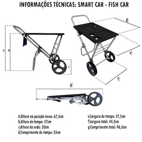 Itens inclusos: 01 carro de praia com tampo plástico, 1 bolsa porta objetos, 1 extensor elástico