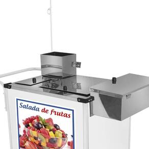 Esse Carrinho é fabricado com estrutura em aço carbono e chapa de aço pintada de branco, possui caixa para mantimentos e reservatório térmico para condicionar suas saladas de frutas e fazer boas vendas. Além disso acompanha um incrível adesivo e guarda sol para dias ensolarados e chuvosos.