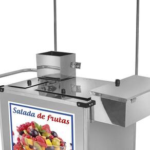 Esse Carrinho é fabricado com estrutura em aço carbono e chapa de inox 430, possui caixa para mantimentos e reservatório térmico para condicionar suas saladas de frutas e fazer boas vendas. Além disso acompanha um incrível adesivo e toldo para dias ensolarados e chuvosos.