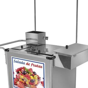Esse Carrinho é fabricado com estrutura em aço carbono e chapa de inox 430, possui caixa para mantimentos e reservatório térmico para condicionar suas saladas de frutas e fazer boas vendas. Além disso acompanha um incrível adesivo, toldo para dias ensolarados e chuvosos e sistema de rodas pneumáticas podendo ser transportadora por ruas, calçados, paralelepípedos ou até mesmo na praia, fazendo sua salada de frutas ser conhecida em todos os lugares!