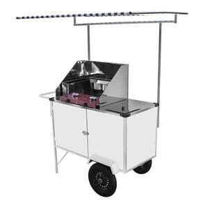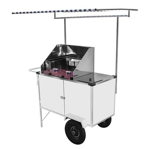 Esse Carrinho é fabricado com estrutura em aço carbono e chapa de aço pintada de branco, acompanha 3 canecas pequenas para qualquer tipo de recheio e fogão 2 bocas baixa pressão indo pronto para o uso. Além disso acompanha adesivo, toldo para dias chuvosos e ensolarados e sistema de rodas pneumáticas que permitem o Carrinho ser transportado por ruas, calçadas, paralelepípedos ou até mesmo na praia.