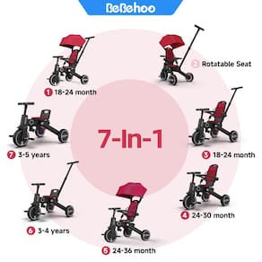 - 4. Componentes removíveis: componentes facilmente destacáveis, como o dossel e a barra de segurança, oferecem as opções para atender às preferências do seu filho e condições climáticas variáveis com a bicicleta triciclo de empurrar para crianças.