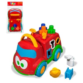 O Carrinho Dino Bombeiro da Cardoso possui encaixes com bordas coloridas que facilita a visualização do contorno do desenho e peças com temas de bombeiro para o bebê brincar de encaixar. Na parte de trás do produto tem uma porta que simula um “porta-malas” para o bebê brincar de retirar as pecinhas por lá. Em cima do caminhão tem engrenagens coloridas que giram de um lado ao outro, alavanca e chave que fazem barulho de crec crec.