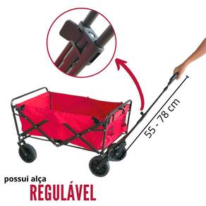 Carrinho Dobrável Camping Articulado Importway IWCDCAVM Vermelho Que tal esse carrinho dobrável camping da Importway Ele irá te auxiliar no transporte de todos os objetos que você levar para o camping, para a pesca, para o piquenique. Ideal para qualquer momento de lazer com sua família ou amigos. Ele é dobrável e de fácil transporte