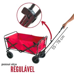 Carrinho Dobrável Camping Articulado Importway IWCDCAVM Vermelho Que tal esse carrinho dobrável camping da Importway Ele irá te auxiliar no transporte de todos os objetos que você levar para o camping, para a pesca, para o piquenique. Ideal para qualquer momento de lazer com sua família ou amigos. Ele é dobrável e de fácil transporte
