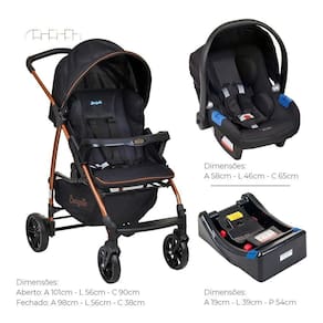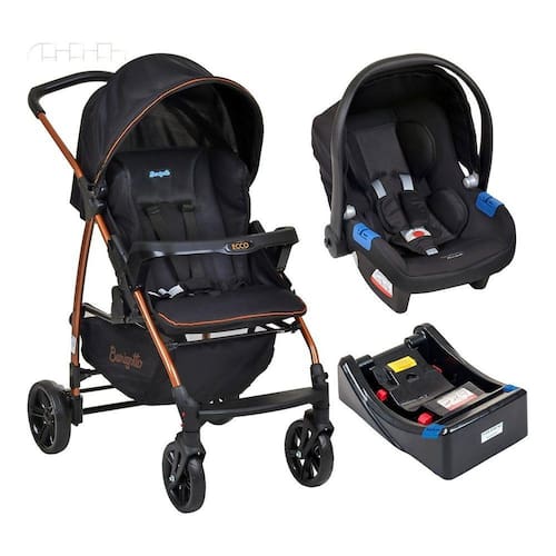 Carrinho Ecco Preto/cobre + Bebê Conforto + Base - Burigotto