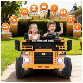 O JOYLDIAS Ride On Dump Truck é um veículo elétrico infantil 2 lugares com design tipo caminhão caçamba para uso lúdico e temático na categoria construção. Equipado com quatro motores de 70W cada (totalizando 280W) e bateria de 24V 10Ah, este modelo oferece desempenho robusto para ambientes variados, podendo operar em modo 4x4 ou 2WD (tração traseira). O sistema de suspensão independente nas quatro rodas e pneus antiderrapantes proporciona estabilidade superior em pisos irregulares, aliado à função soft-start para aceleração gradual e máxima segurança.