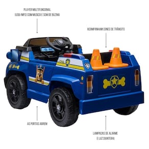 Carrinho Elétrico Infantil Brinquedo Resgate Patrulha Canina Chase Carro Motorizado Policia 12V Controle Usb Luz Sons